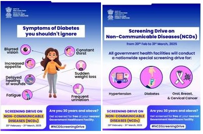 Union Health Ministry launches Intensified Special NCD Screening Drive to ensure 100% coverage of all individuals aged 30 years and above News 21 February, 2025